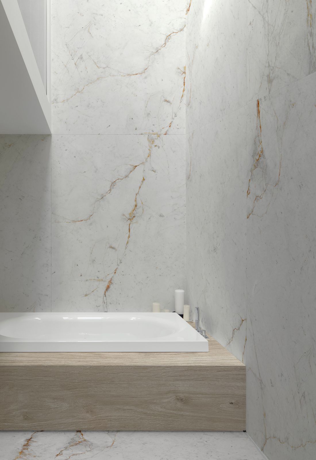 Cảm hứng cho mẫu sản phẩm này đến từ đá cẩm thạch trắng cổ điển; trong trường hợp này, nó nổi bật với những đường vân xám vàng trên nền trắng ngà. Sản phẩm có hai phiên bản hoàn thiện Décor Polished và Silk finishes. Lớp hoàn thiện cuối cùng này mô phỏng hiệu ứng bề mặt bị xói mòn theo thiết kế vân vàng, mang đến vẻ ngoài tự nhiên hơn.